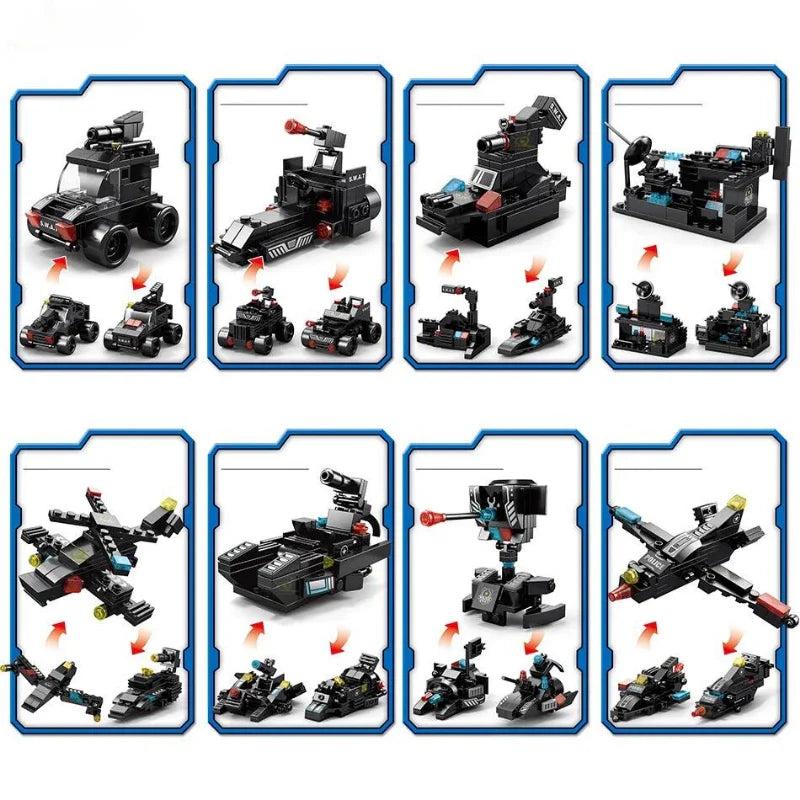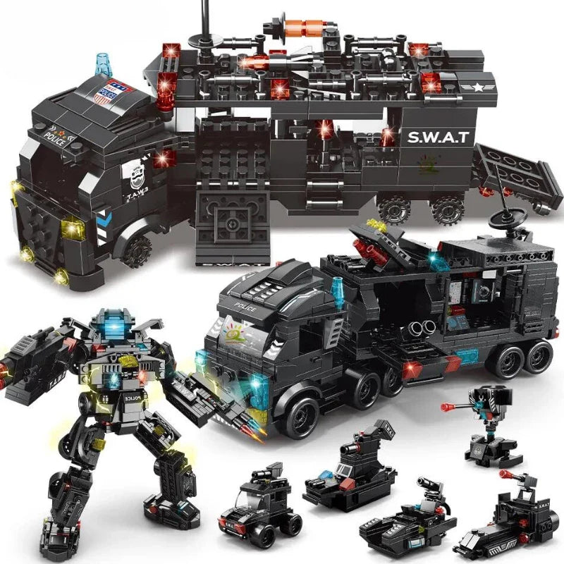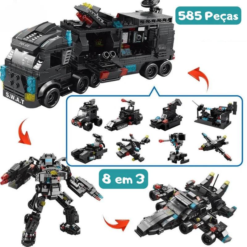 - Quais modelos podem ser construídos? Possui múltiplas opções de montagem, como robôs e veículos táticos.